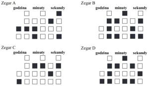 – każda kolumna odpowiada jednej cyfrze zapisu dziesiętnego godziny przedstawionej w postaci binarnej